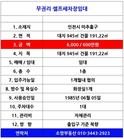 ÀÎõ¼Õ¼¼Â÷ÀåÀÓ´ë ¸Å¹° ¼¿ÇÁ¼¼Â÷Àå°ú ÇÔ²² ¿î¿µÇÏ¸é¼ µ·¹ö½Ç ¼ö ÀÖ´Â ¸ÅÀåÀÔ´Ï´Ù